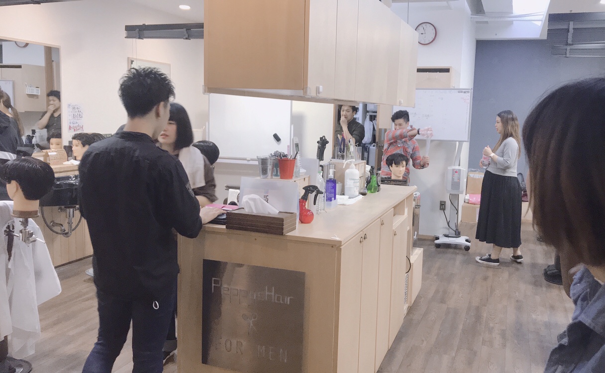 先輩スタッフをモデルにシェービング…