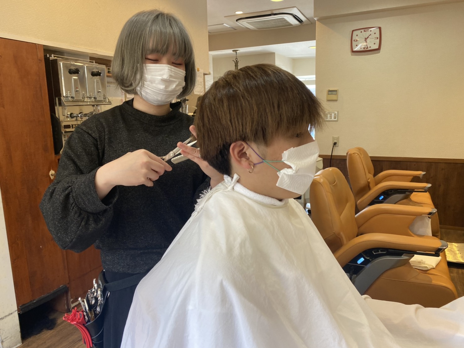 ・カット中には、簡易マスクをお渡し。着用をお願いしています。